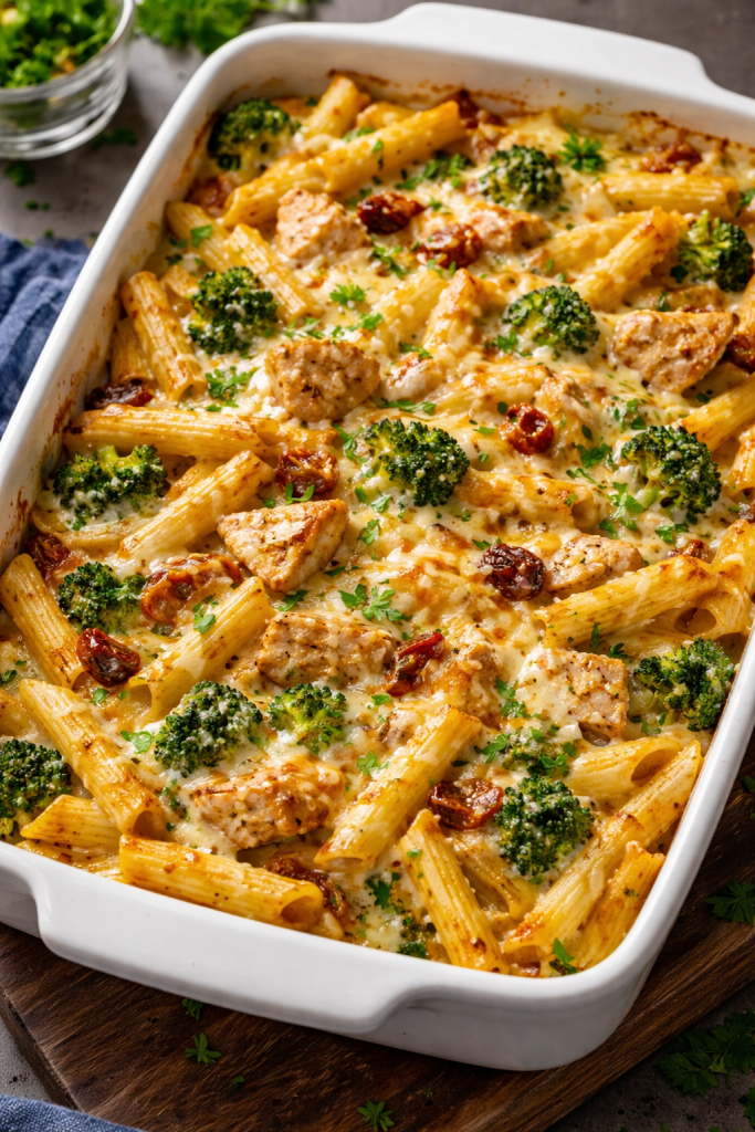 Kanapasta uunissa yhdistää kaksi herkullista asiaa: pastan ja kanan!